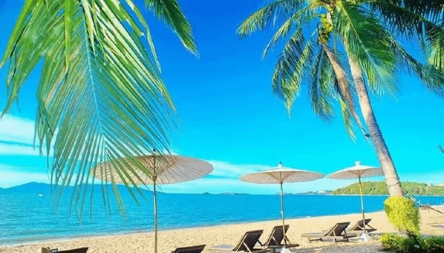 这里不仅有精致的沙滩、清澈的海水,还有那形态摇曳的椰子树随海风婆娑摆动,勾勒出醉人的样子,营造自然的享乐天堂。