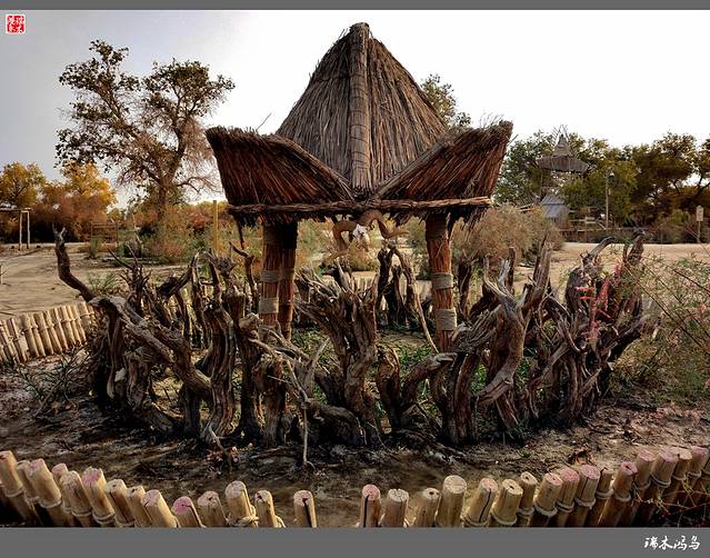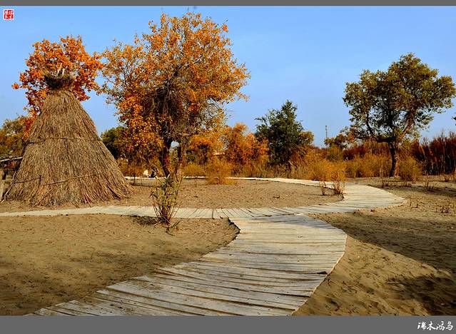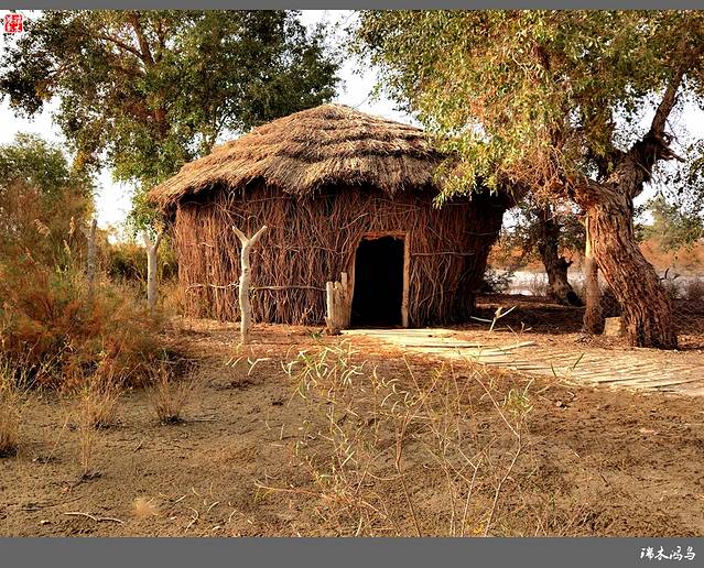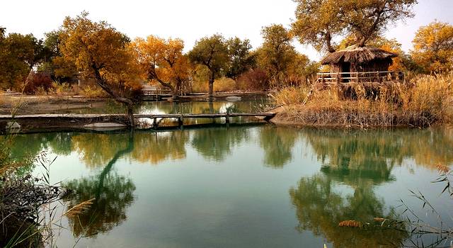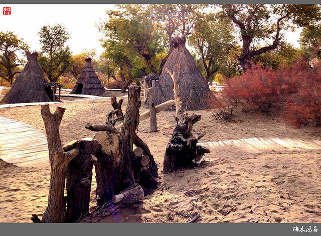 罗布人村寨位于新疆塔里木盆地东北边缘,巴音郭楞蒙古自治州尉犁县墩阔坦乡的塔里木河河畔。这里有千姿百态的原始胡杨林,塔里木河与渭干河在这里交相辉映,塔克拉玛干大沙漠一望无际。划独木舟、食烤鱼、讲罗布泊方言的罗布民族就生长在这里。罗布人是新疆最古老的民族之一,他们生活在塔里木河畔的小海子边,“不种五谷,不牧牲畜,唯以小舟捕鱼为食。阿不旦,在罗布方言里,是“水草丰美,适宜人居”的意思。对于罗布人来说,阿不旦是他们童年的摇篮、中年的竞技场和老年的归宿,是他们世世代代赖以生存的地方。这里有沙漠、湖泊、河流、草原,还有原始胡杨林。沙漠与最长的内陆河、最大的绿色走廊和丝绸之路在这里交汇,造就了一处世外桃源般的风景。罗布人的毡帽很有特点,上狭下宽,帽檐展开可抵烈日,帽檐放下可御严寒,用草药浸泡,还可按摸穴位。因其多种用途及独特的功效,被人们称之为长寿帽。”罗布方言是新疆三大方言之一,其民俗、民歌、故事都具有独特的艺术价值。罗布人村寨景区以罗布文化为灵魂,以生态建设为基础,以综合资源开发为目标,以民俗文化、探险旅游为特色,是一个集沙漠、胡杨、河流、湖泊于一体,自然景色各异,生态环境优美的旅游区。罗布人村寨景区分为八大功能区:一是罗布人民俗文化区;二是沙漠旅游探险区;三是“神女湖”旅游区;四是沙雕艺术园;五是沙漠植物园;六是野生动物园;七是丝绸之路民族园;八是塔里木河探险旅游区。
