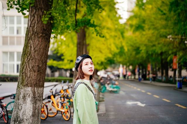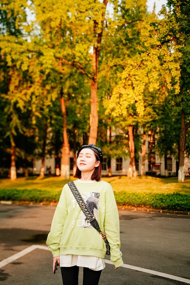 电子科大的银杏风景在全国的银杏观赏地绝对是名列前茅的,1600余棵银杏树在同一时间由绿转黄,大片大片的金黄晕染着整片街道,飘飘洒洒落下来的叶子,也仿佛如坠入人间的般俏皮又可爱。