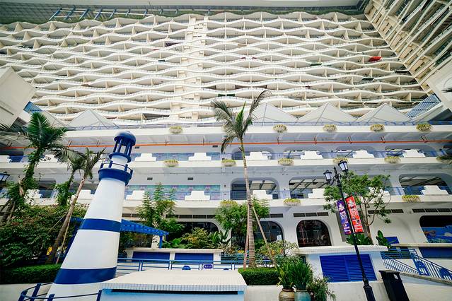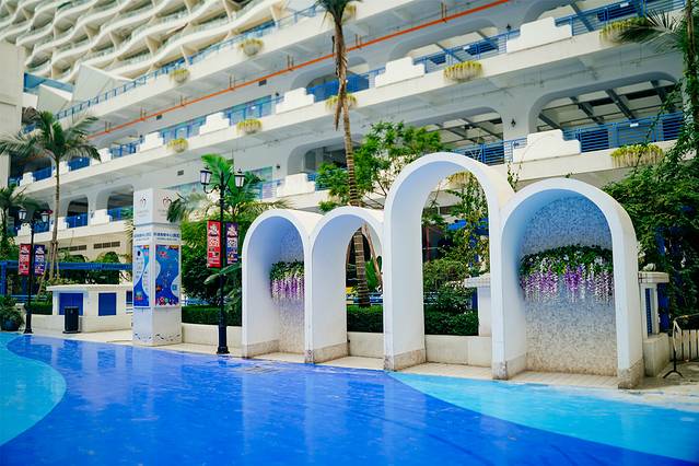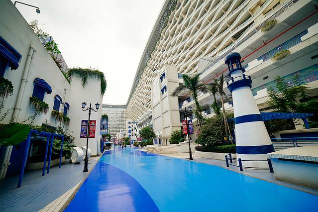 圣托尼里是位于希腊爱琴海的一个小岛,因其岛上建筑蓝白相间,衬以蔚蓝大海,深受游客们的喜欢。环球中心西商业就宛如成都版的圣托里尼小镇,灯塔、水池、鱼雕塑作为帮衬,大面积的地中海蓝与洁净的白相交织,让你有种到地中海度假的奇妙体验。