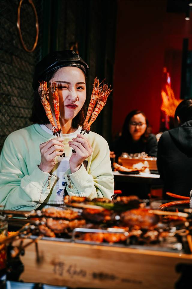 焖烤就是低温并且长时间烤制,这样焖烤出来的肉就能锁住肉质本身的鲜美和水分。而且焖烤也更加适合在大块肉上,所以店内的串串份量都是扎实的很。