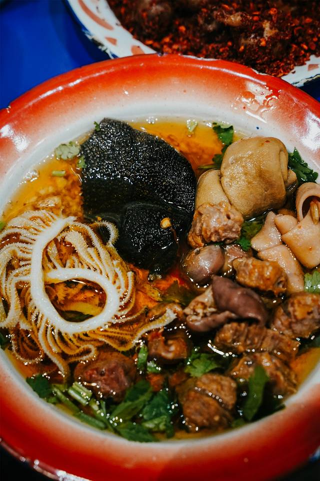 如果天气冷些的话还可以再来一份羊杂汤,趁着热乎乎喝下肚,非常暖和。