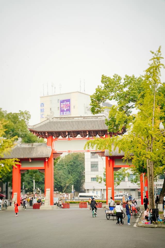 如今成都最IN的太古里商业圈想必是所有人去成都都会打卡的地方,而大慈寺——一座已有1600多年历史的古庙就坐落在与太古里只有一墙之隔的地方。站在大慈寺的门口,仿佛就像站在历史与现实的交叉路口。但是很微妙的是,你却丝毫不觉得怪异,香烟鼎盛的大慈寺与时尚现代的太古里,安宁平静与热闹繁华,被一面墙相隔开来,却又奇妙的融合在一起。
