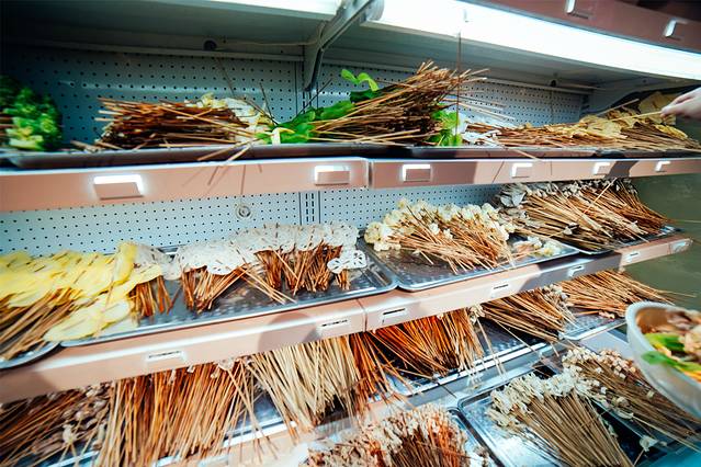 叶婆婆钵钵鸡的菜品选择非常多,让人有种所有食材都可以用来串成钵钵鸡的感觉。