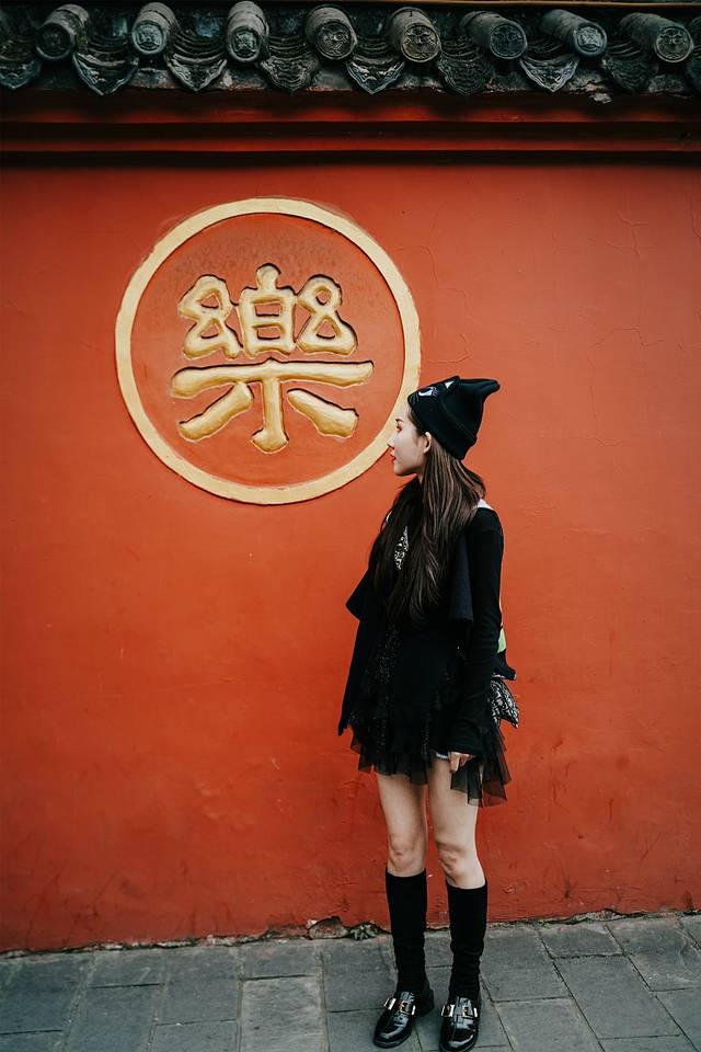 这条街也是意外的好拍,背景的红墙绿瓦非常好看。