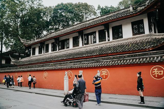 文殊院始建于隋大业年间,是全国佛教的重点寺庙之一,也是成都最早的佛寺之一。处于成都市井之地的文殊院,却如处在远郊深山外般清净。寺院与滚滚红尘之间,仿佛就由着那红墙绿瓦隔开,但又靠着来寺院的信男信女们相连。
