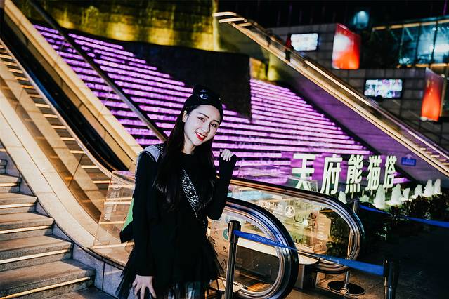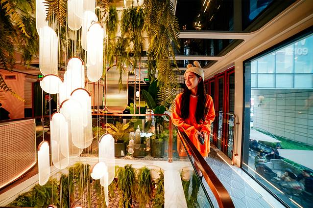 从四季花园往火车方向还有一条空中走廊,层层叠叠而上的黑色楼梯给人一种无限的纵深感。工业现代感十足,搭配上昏暗的光线,轻松拍出颓废冷酷风大片。
