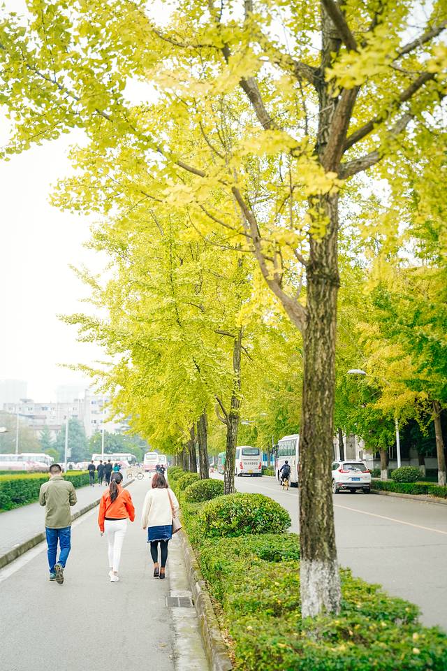 望江校区的玉章路,每年深秋时的银杏树一片金黄的景象也是来成都赏银杏风景的大好去处。在化学馆门口,更是有两颗被成都市政府编号的百年老银杏树哦,非常具有打卡意义了。