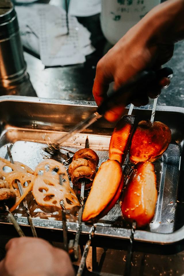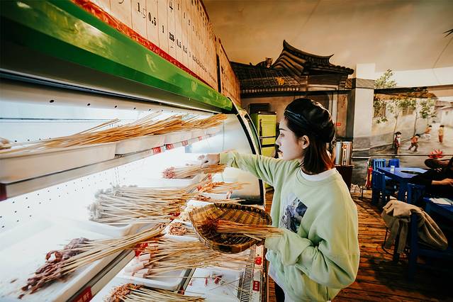 小A感觉来了成都之后真的是完全停不下来对串串的喜爱,每一家串串又都有着各自的特点。像得劲儿家的烤肉串,不是传统的炭火烧烤。他们家的串串都是用的焖烤的方式,把食材一串串裹上调料之后,挂在专门的土缸子里进行焖烤。