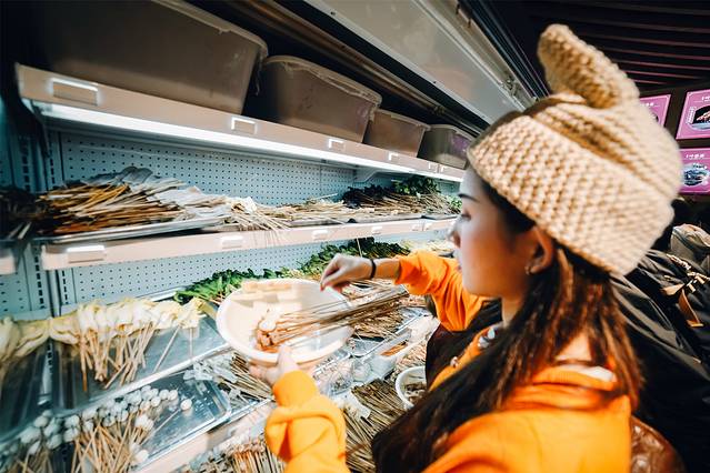 所有食材都非常干净卫生,整齐摆放在开放式冷柜里面任君挑选。