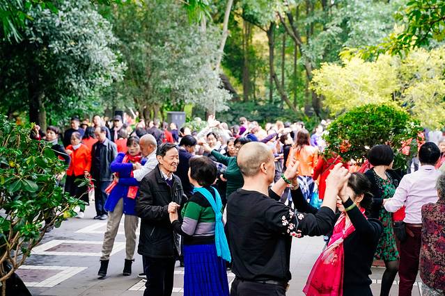 这里每天都非常热闹,喝茶、聊天、搓麻将、跳广场舞,还有赏花观鱼。穿梭在人群中的小A也情不自禁的就被这其乐融融的氛围感染,仿佛自己与大家本就相识,人与人之间仿佛不存在隔阂般,温暖舒适。