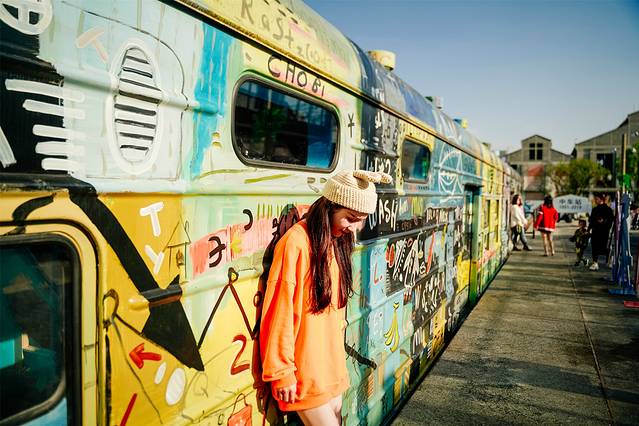 废旧的火车被改造成了重金属音乐盒,酷炫的艺术涂鸦装饰着整个火车车厢,还有原始的火车铁轨,不管你怎么拍,都能轻松找到感觉。