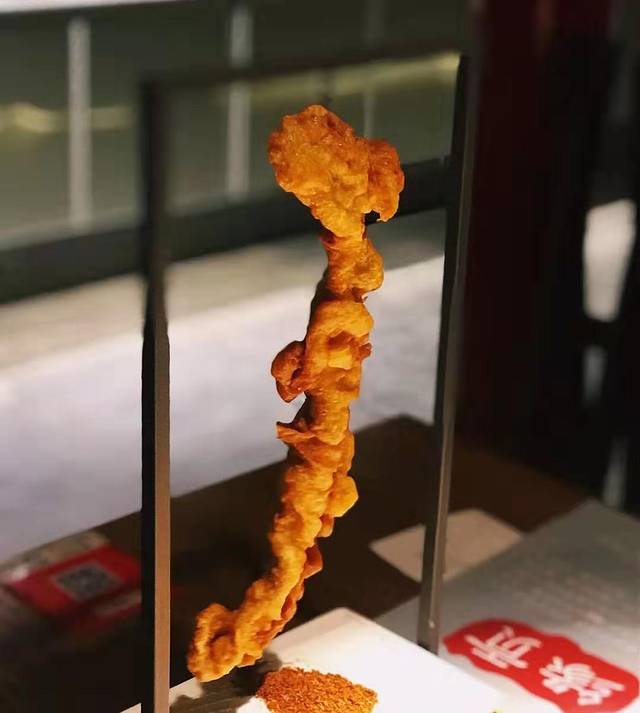 龙门吊肉:摆盘很特别,造型真的惊艳到我了,简直就是放大版的酥肉,肥瘦相间,服务员会剪成几段,边剪嘴里还会说着祝福语,肉炸的很脆,外酥里嫩,吃起来也不会腻。