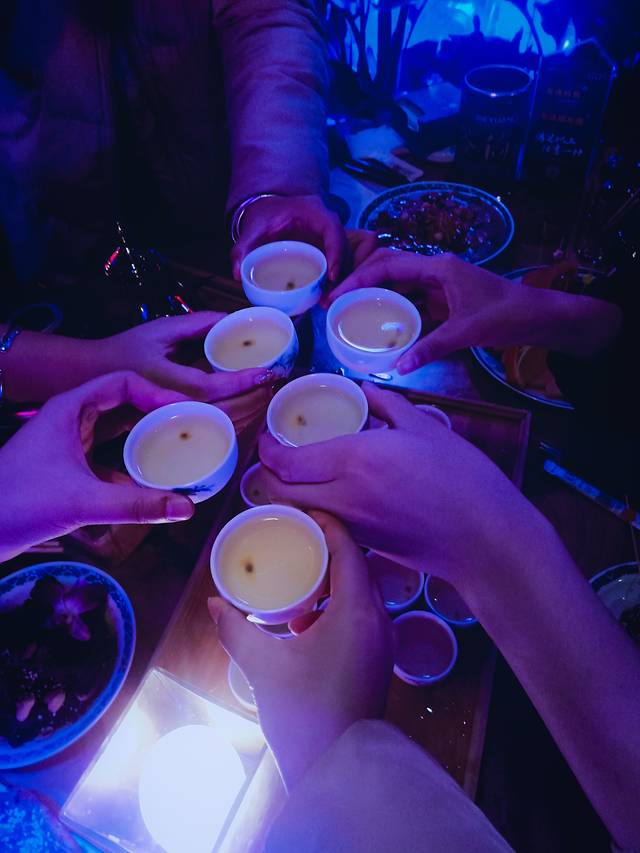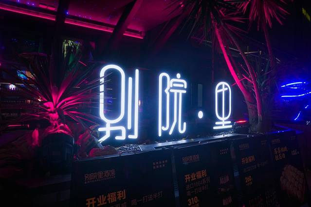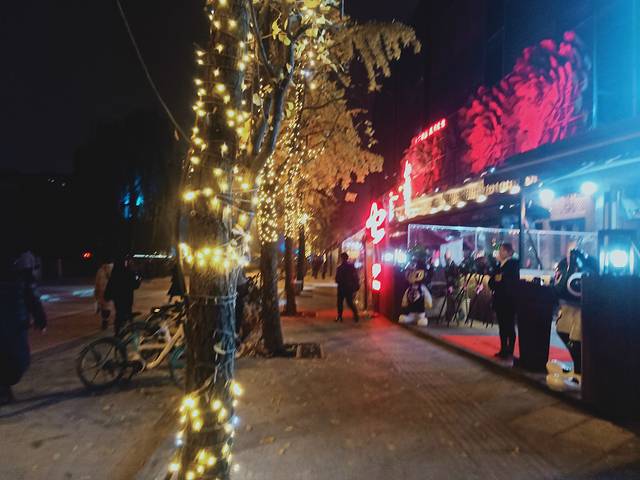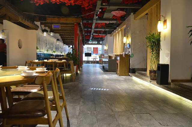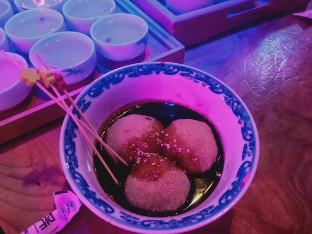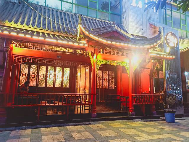 店内装饰中式元素搭配现代闪烁的霓虹灯店门口灯光烘托,看着就很有气氛,最喜欢的是顶上那个会动的五彩的泡泡灯。