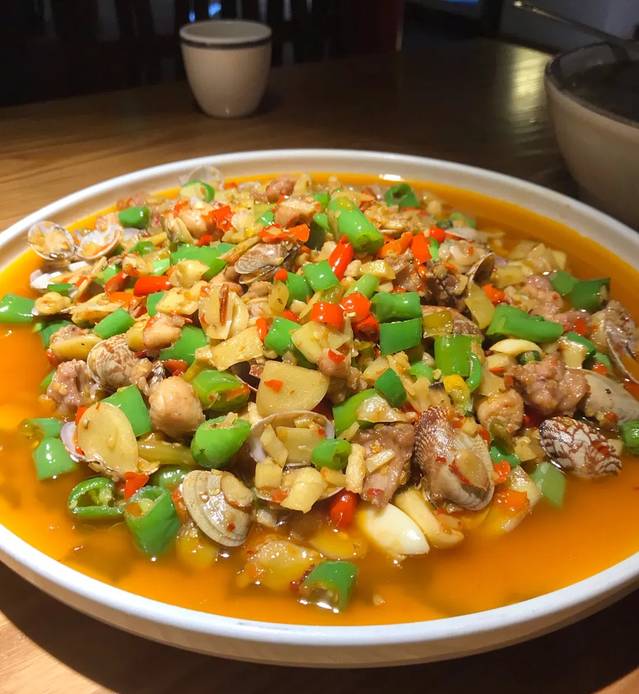 推荐他家的招牌兔,很大一盘,色泽看着就很诱人,各种配料,味道够辣,够鲜,里面还加了花甲,对于我这种重口味来说要是多点汤汁用来泡饭更好。