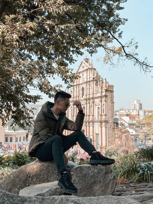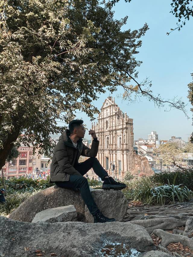 1. 大三巴右手边通往大炮台的小公园(认准这块石头和这棵树)