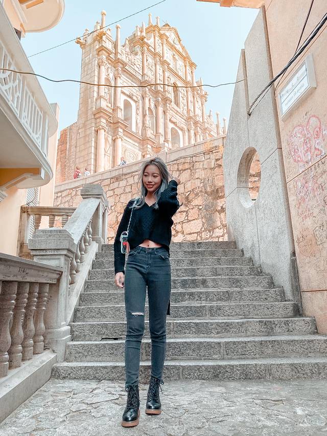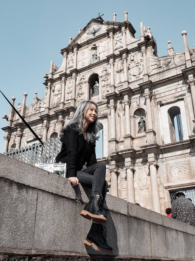 由于起床后吃完饭已经是下午了,所以大三巴前面的楼梯上非常多人拍照,在这里我告诉大家有三个能拍出没有人的大三巴的点