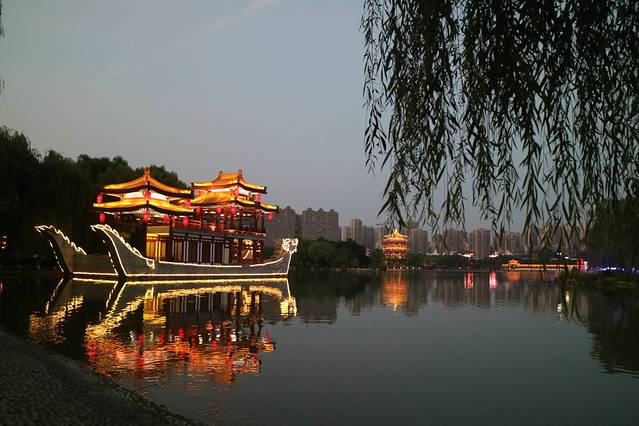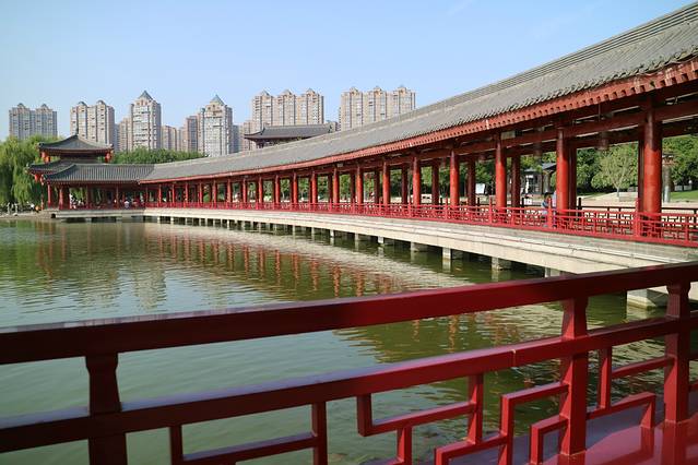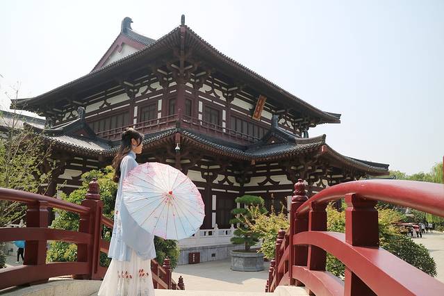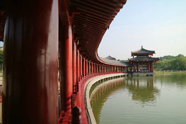 园内建有紫云楼、仕女馆、御宴宫、杏园、芳林苑、凤鸣九天剧院、唐市等许多仿古建筑,是中国最大的仿唐皇家建筑群,景区由中国工程院院士张锦秋担纲总体规划和建筑设计。