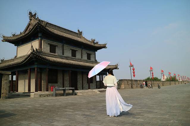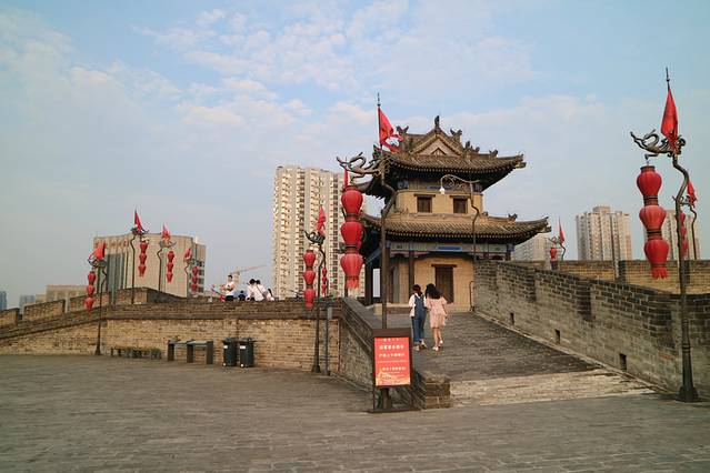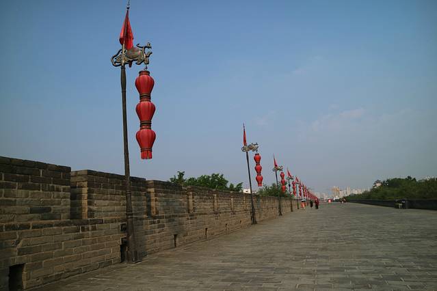 我国现存最完整的一座古代城垣建筑,稳固如山,包括护城河、吊桥、闸楼、箭楼、正楼、角楼、敌楼、女儿墙、垛口等一系列军事设施。风貌完全的城墙与护城河及环城公园组成了西安市一大旅游景观。西安城墙环绕城市的中心区。