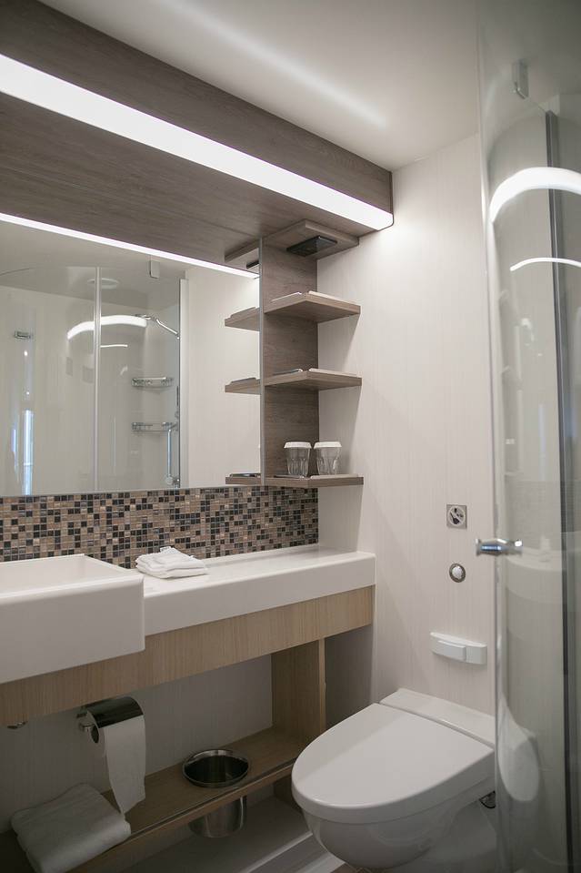阳台房果然要宽敞和亮堂许多呦~在这里要建议大家,虽然会贵一些,但还是选择阳台房吧,毕竟,这里推窗就能望见大海,这里也是你接下来几天移动的“家”,让自己舒服些,比什么不重要呢?