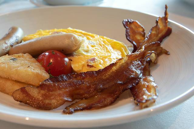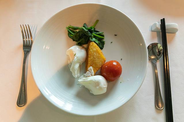 我的小朋友,也在认真的吃着游轮上的第一份早餐。