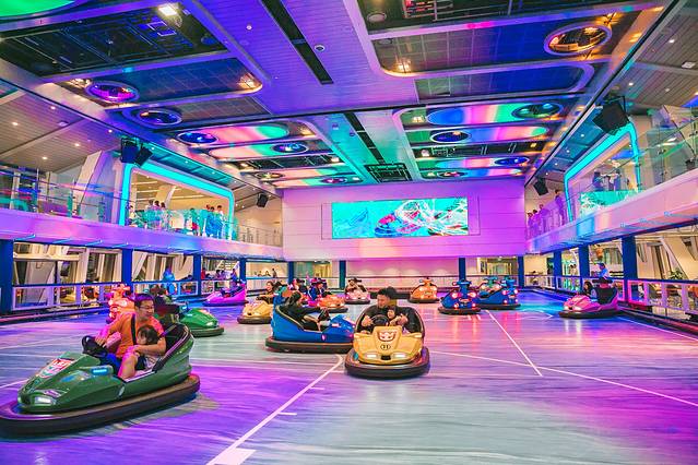 最后一日的航海日了,怎么也要带小朋友玩一下他最期待的项目。d按着航程指南公布的开放时间,终于等到了碰碰车,这,一定是你来光谱号一定要打卡的玩乐项目。