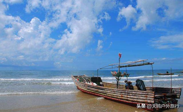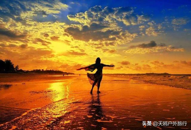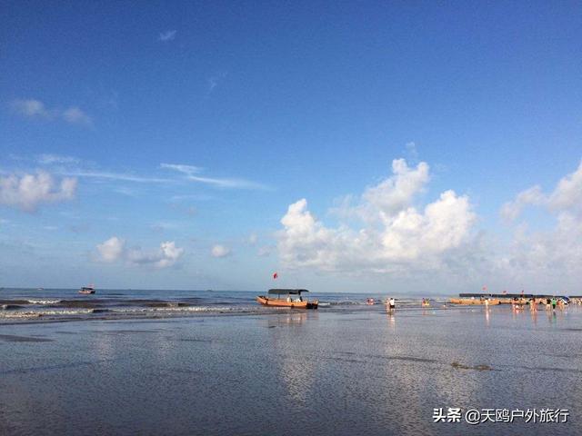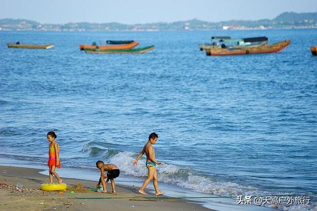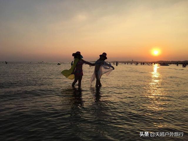 下午游玩万尾金滩一般选择4-6点的时候,去的太早阳光太热烈,容易晒伤皮肤,太晚海水太凉就不能下水了。这个时候在沙滩上散散步,或者乘坐渔船出海,享受海上美景与惬意时光,然后差不多就到日落时分了,便可欣赏这里金灿灿的海滨美景。如果玩的还不过瘾,晚上租个帐篷(或者自带)就在沙滩上露营,感受漫天星光。