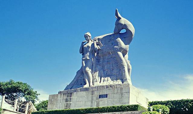 在鹿回头公园也有着那么一个美丽的爱情传说、古代一位英俊的黎族青年猎手,头束红巾,手持弓箭,从五指山翻越九十九座山,涉过九十九条河,紧紧追赶着一只坡鹿来到 南海 之滨。根据这个美丽爱情传说而建造的 海南 全岛最高雕塑“鹿回头”已成为 三亚 的城雕, 三亚 市也因此得名“鹿城”。