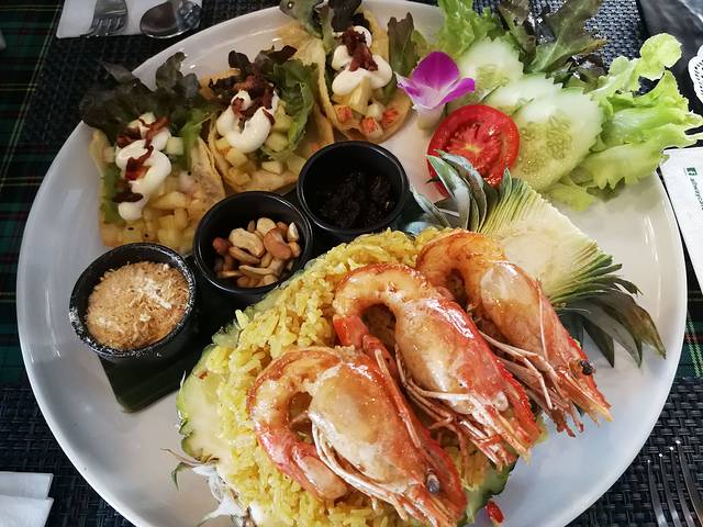 进去坐下 点了一份空心菜 冬阴功汤 炒饭 还有芒果糯米饭(小黑的最爱)