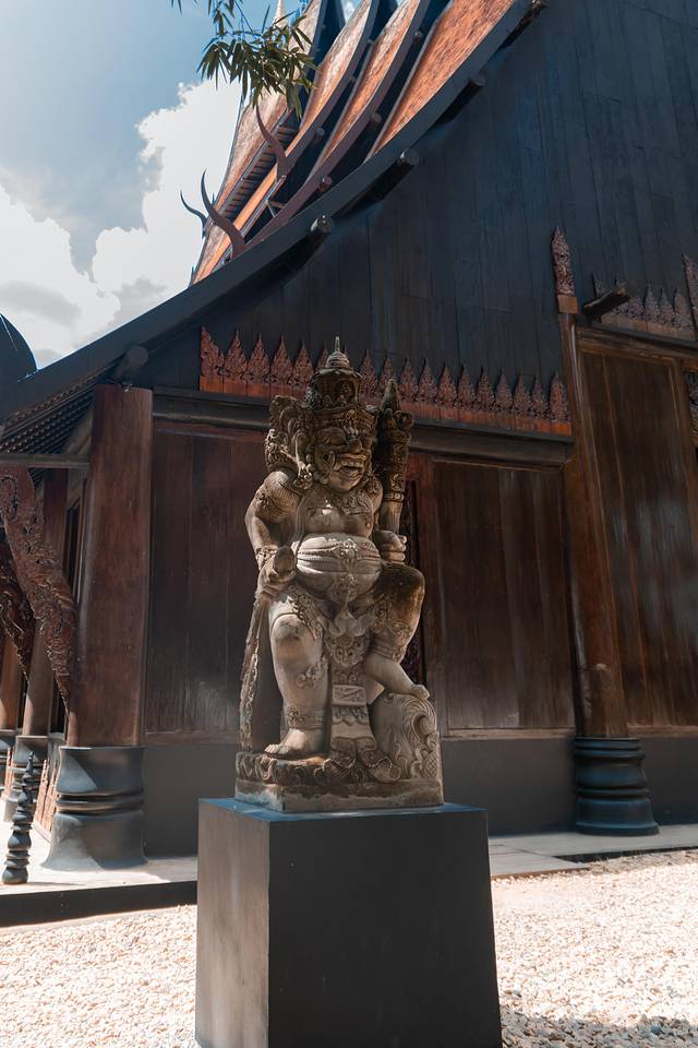 大家习惯叫这里“黑庙”,其实是黑屋博物馆,是泰国艺术家Thawan Duchanee建造的私人博物馆。进门的第一个屋子供奉着佛像,后面的屋子大部分陈列的都是动物的尸骨和皮毛。