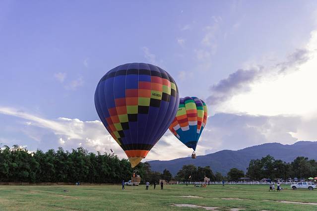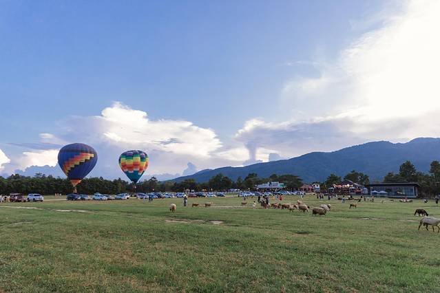 我们在热气球前面拍照的时候,有两个当地人过来,问我们要500泰铢。灵敏的嗅觉告诉我们,一定是骗人的!我们问为什么要收费,他们英语不好,说不清原因,只说这里每个人都收费了。