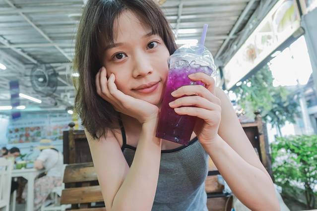 加入柠檬汁之后蓝色蝶豆汁会变成紫色,就是我手里的这杯。味道我不是很喜欢,但是能接受。