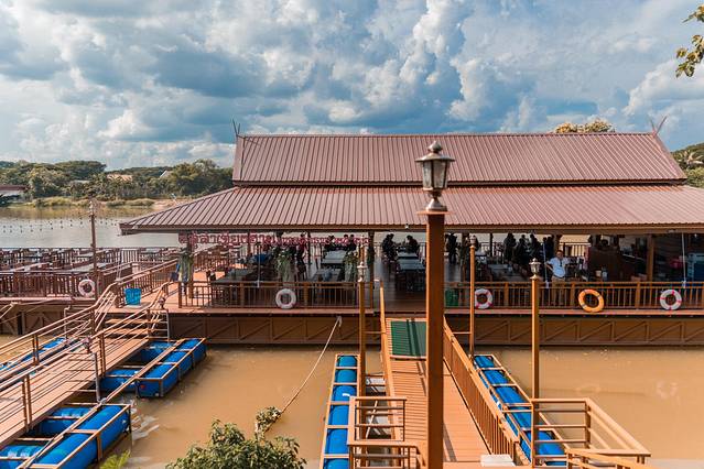 司机说午餐带我们去湄公河上吃饭,这是一家当地特色的餐厅LuLum 。它建在河边,面前的这条河是Mae Kok River,其实它只是湄公河的小小分支,四舍五入我们也算到过湄公河了吧。