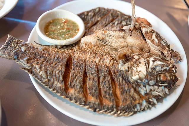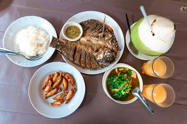 午餐去了大名鼎鼎的泰北玫瑰Tong Tem Toh,大失所望,这里的菜品比较local,不合我们的口味。第一次尝了特色的烤罗非鱼,也不好吃。