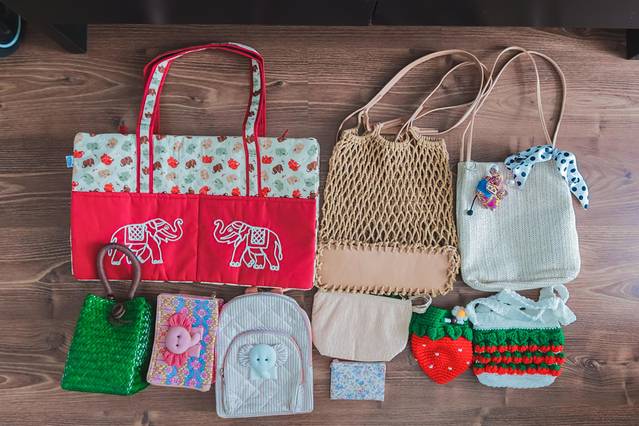 顺便附上我买的草编包、草莓包、曼谷包全家福~