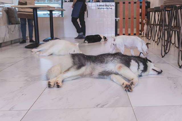 店里的狗狗都很友好,而且很慵懒,大部分都趴在地上睡觉。⬇️