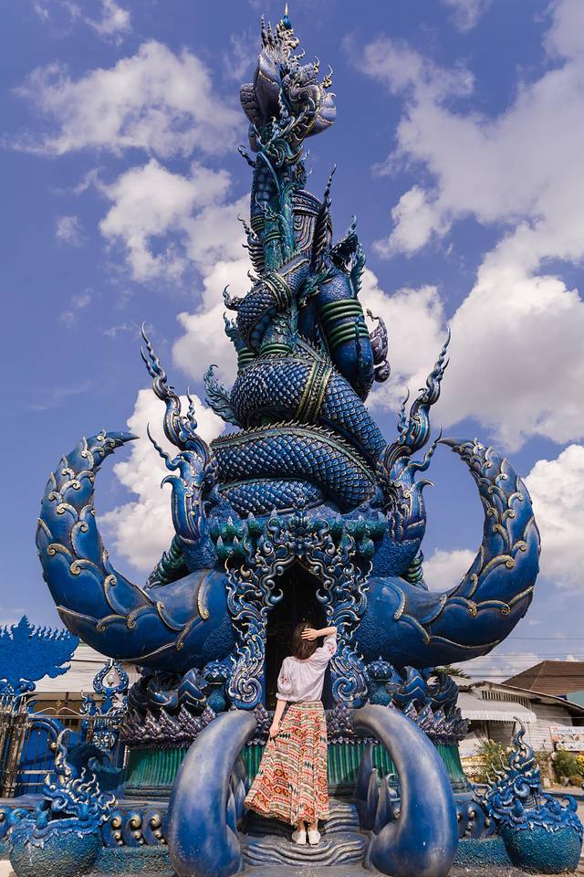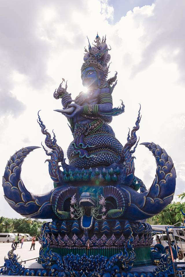 蓝庙的设计者是白庙的徒弟Phuttha Karbkaew,他延续了老师的风格,将蓝色的运用发挥到了极致。