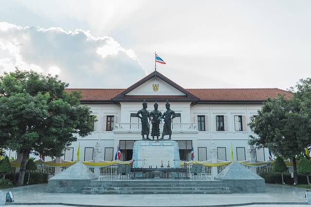 当时孟莱王准备定都清迈为兰纳王朝首府,于是,孟莱王邀请了自己的两位结义兄弟,素可泰的兰甘亨大帝和帕夭国南蒙王一起商讨,最终确定了如今清迈的城市地址,而今天的清迈市中心,则是塑造了三位建城国王的铜像,也就是三王广场的由来。
