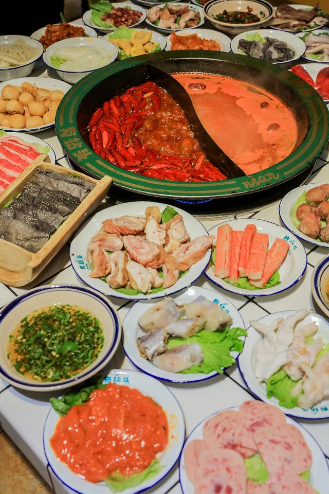 就是等待的时光太过难捱,几分钟好似 天长 地久。这时就适合鸭肠和毛肚粉墨登场,筷子下去烫一烫,它就害羞地蜷起身子。有的实在不好意思,趁人不注意偷偷溜掉。这时候筷子下去随机“捡漏”,千言万语都抵不上口腔中幸福的眩晕。点一份实惠的套餐,荤素搭配好,要知道,肉不是火锅的唯一主角。特制的老鹰茶汤底,涮食后洗去油腻,舌尖回甘,与火锅相得益彰。