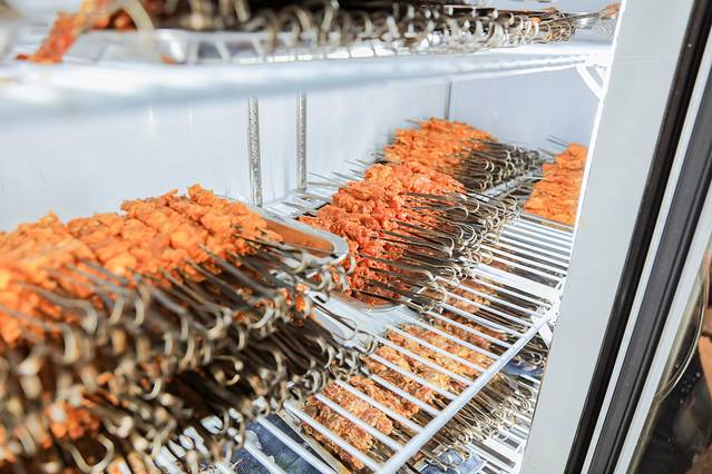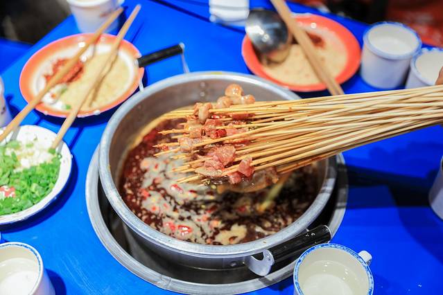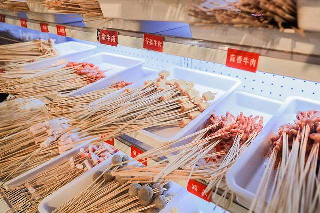 冰柜里满满放着用铁钩串好的一个一个肉串,肉串都非常紧实大块!想吃哪个就拿哪串。不愧是连续2年登上 成都 必吃榜美食店呀。