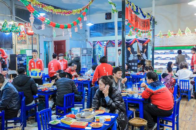 店面不大,暖黄的灯光倾洒下来,把冬夜的寒冷都驱散。十几张凳子乖乖巧巧地排在那里,等待谁的出现。一进去,吵闹和喧嚣翻涌而来,划拳猜谜、八卦笑话最适合和麻辣烫一起下饭。这是 成都 人最本真的一面,跳脱出世间规则,洒脱性情都在一锅麻辣烫中得以释放。