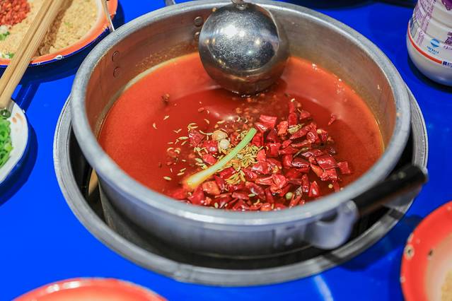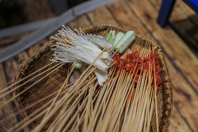 串串统统下锅,热度已到沸点,铁锅承受不住洋溢的热情,催促我动筷。拿一根牛肉,很轻易就能将它与串串剥离,这是熟了的标志,不用再揣摩牛肉的心思。香辣爽快,喉咙都直呼过瘾!