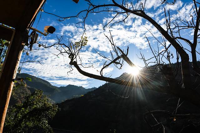 “幽居”在这如世外桃源般恬然的山谷,连时光仿佛都不忍向前流走,清晨九点半,才看到阳光悠闲散漫地爬上山头。太阳跳出来那一刻,山间云雾便“落荒而逃”。
