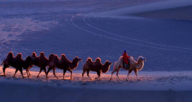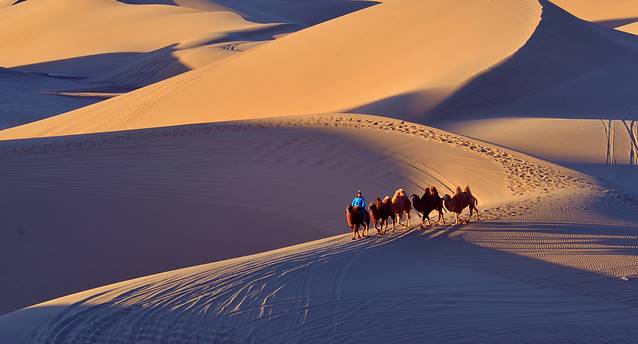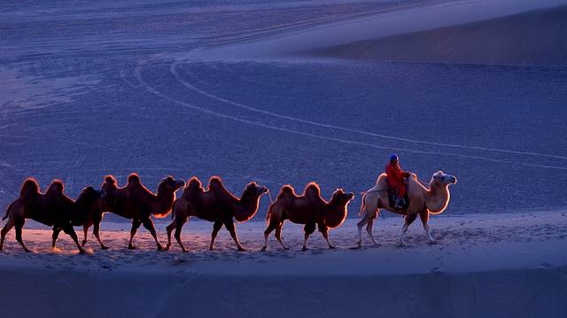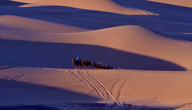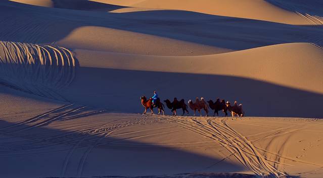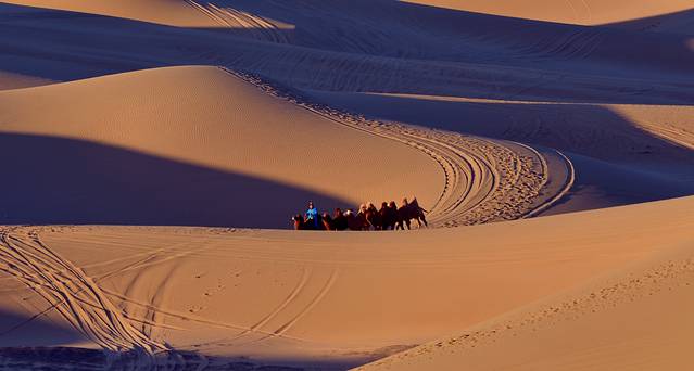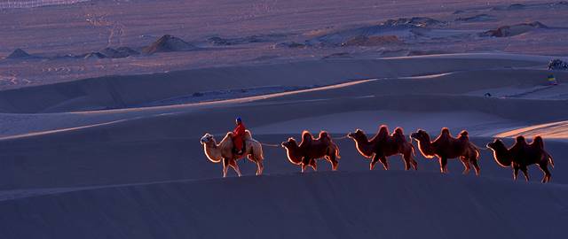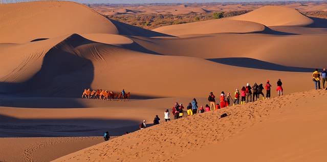 特别提示:如果你是摄影爱好者,八道桥是拍摄沙漠日出、日落的最佳地方,这里还可以拍摄人像和骆驼在沙漠中行走的魑影等(早晚均可),但前提是时间非常早,你必须赶上景区在日出前提前安排的专班车赶到这里;你要拍到美片、好片,还必须出钱请(骆驼大概一匹200元)或者找到有摄影团的旅行团队,沾光拍摄。