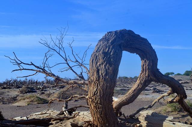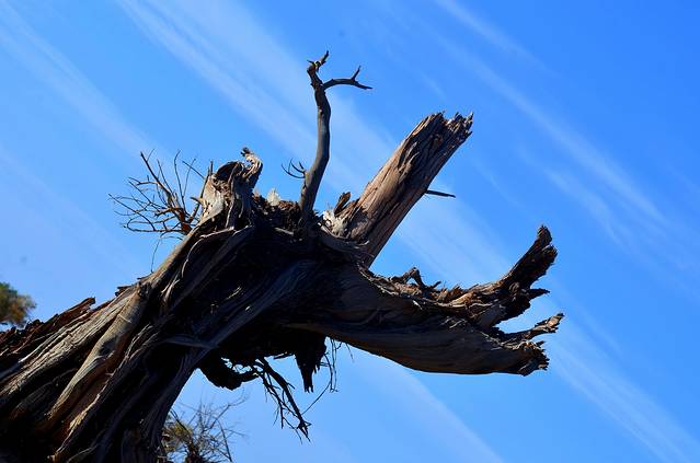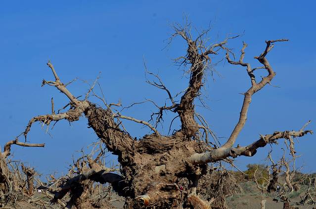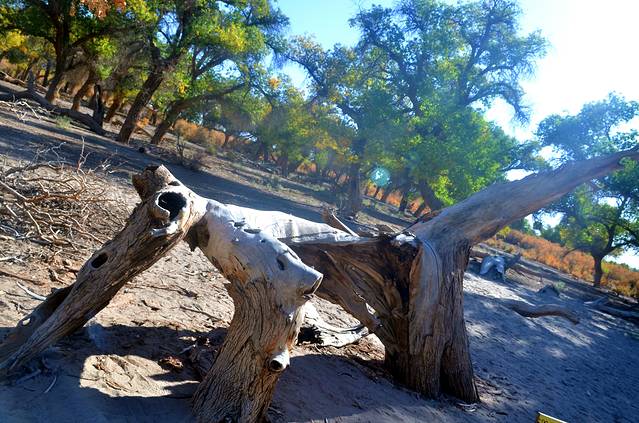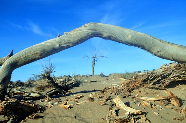 特别是在濒临死亡的时刻,胡杨也会将所爱的枝条死死撑起,扶着他,让他能够巍然屹立,傲然于世;他们就象我们人类一样,一起生长,一起奋斗,一起悲伤,一起欢唱。
