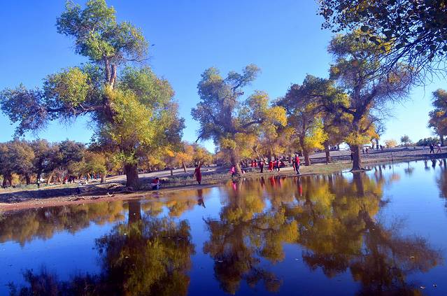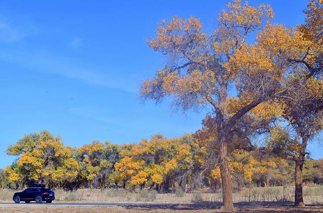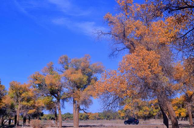 想要更好地欣赏胡杨树的美景,最佳的观赏时间和位置非常重要,而且会随着时间和季节的变化而变化(最佳时间是每年九月底到十月中旬),本人认为二道桥最美,因为这里有树有水,还是电影《英雄》的外景取景地,在这里你可以观赏“晚霞撒余晖,胡杨染金秋”的美景。