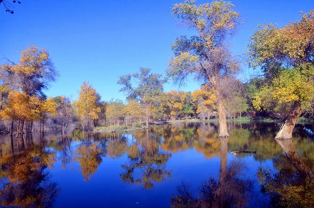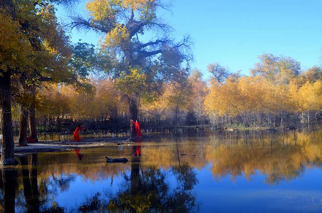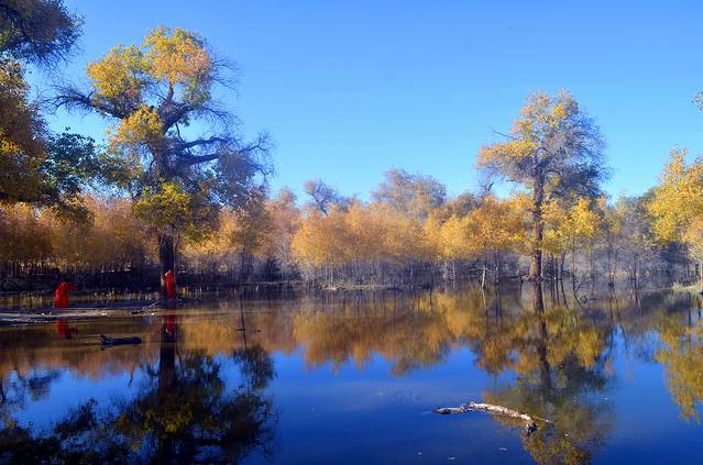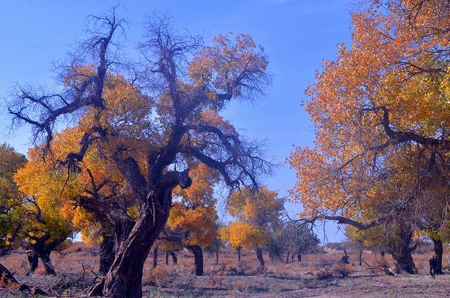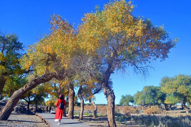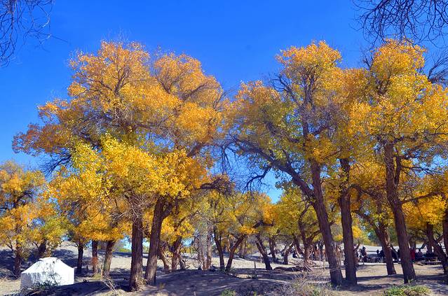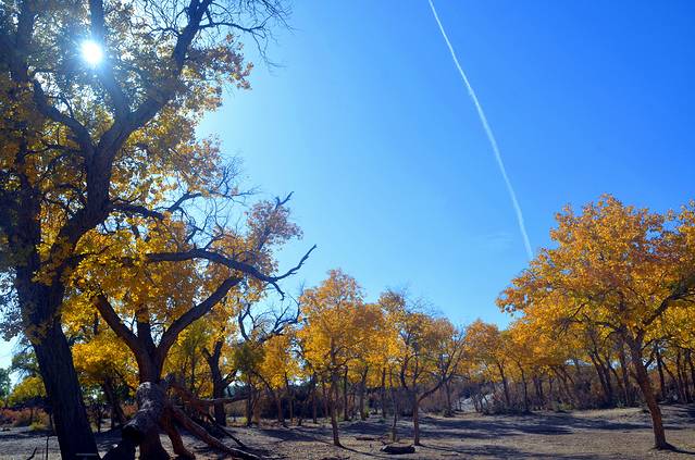 有人说:如果你爱一个人,就带她去看额济纳旗的秋天吧,因为那里的大漠胡杨就是天堂。