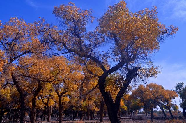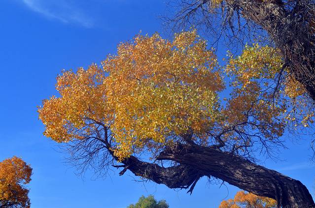 胡杨是生长在沙漠的唯一乔木树种,是大自然漫长进化过程中幸存下来的宝贵物种,且十分珍贵,可以和有“植物活化石”之称的银杏树相媲美,它曾经广泛分布于中国西部的温带暖温带地区。