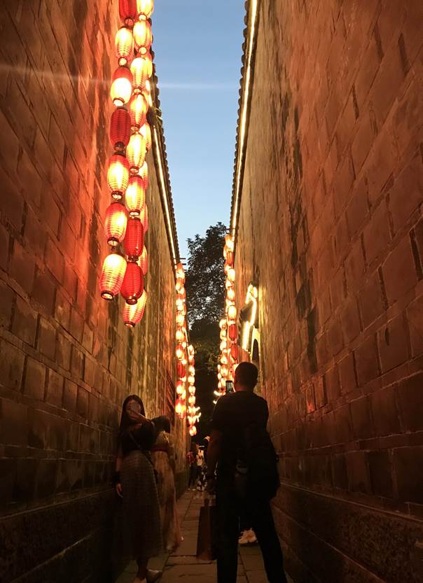 由于行程安排得紧,成都和西安的情况一样都定位为这次行程的途径地。为了第二天出发方便,我们把酒店订在了双流机场附近。毕竟省会城市的早高峰咱们能避就避吧。一路无话我们一行下午四点多到达成都,时间尚早,没来过成都的小伙伴也不能白来一趟,商量了一下就去锦里逛一逛吧。为了节省时间我们把车停到了环球中心让后坐地铁到锦里。(这也是出来旅游积攒的经验,把车停得稍远一些的地铁口,第一避开景点附近的拥堵。第二好找车位。这样反而更节省时间!)
