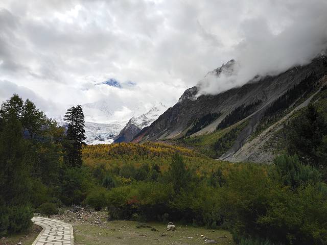 从景区大门要坐几公里的摆渡车,下车后可以选择步行或租匹马到冰川观景台。步行和骑马走两条不同的路,步行的路没什么难度,可以根据自身情况选择。我个人认为观赏冰川效果跟季节和天气有很大关系,我们来时的季节和天气貌似不适合!那值不值得来,就仁者见仁智者见智了!